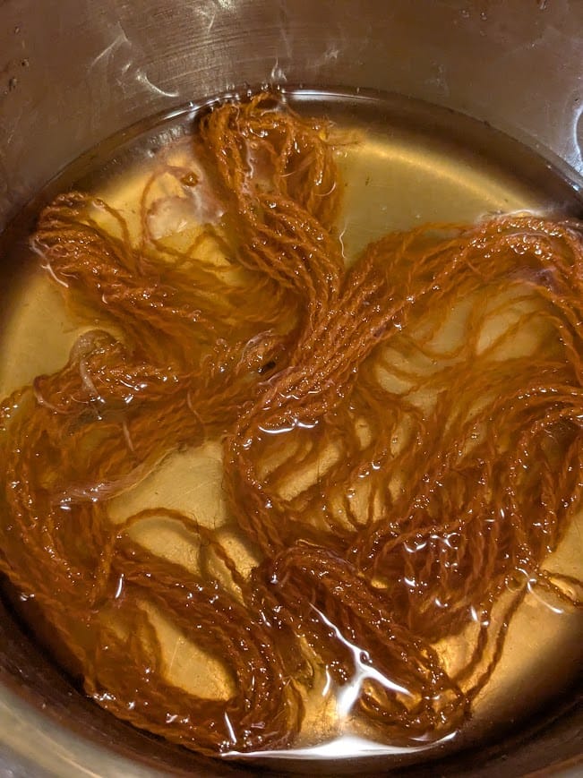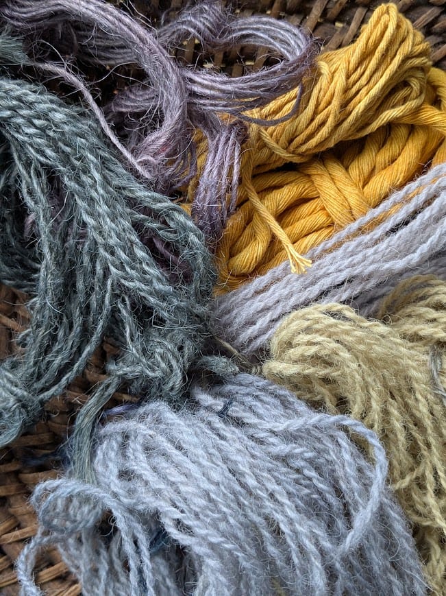 - 3 petits écheveaux de laine locale teintées au cours du stage (3 couleurs différentes)